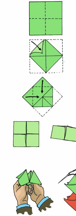 2. Ezután mind a négy sarkot középre hajtjuk a rajz szerint,