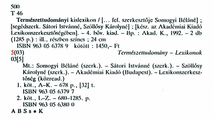 A SZAKKATALÓGUS