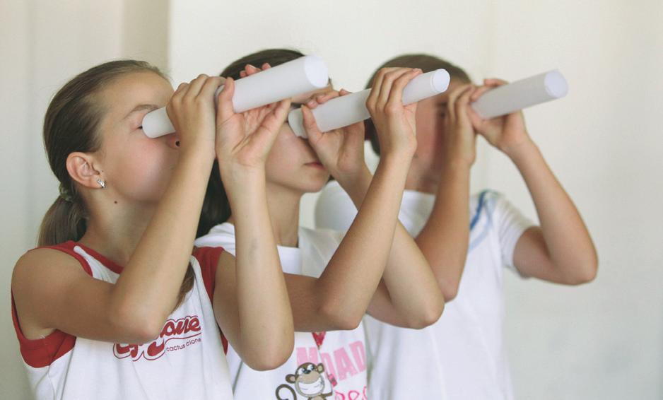 a) Hajlítsátok el a papírhengert, úgy is nézzetek bele!