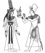 bácsot és a görbe botot tartja. Az alvilág istene.
